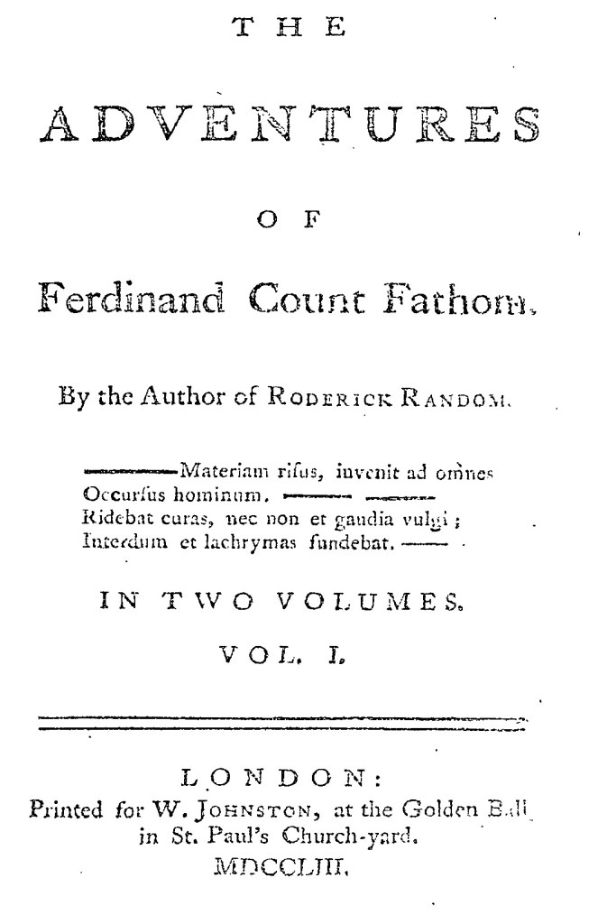 On the title page of The Adventures of Peregrine Pickle (1751) (below) there is an epigraph from Horace’s Ars Poetica 317-318 which means “I would advise one who has learned the imitative art to look to life and matters for a model and draw from thence the living words” (translation from Loeb edition).