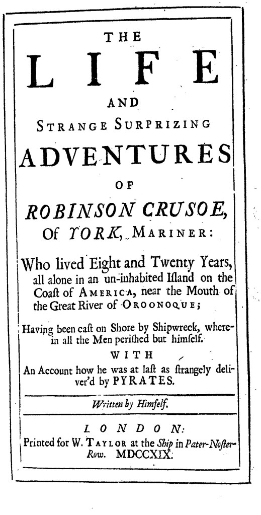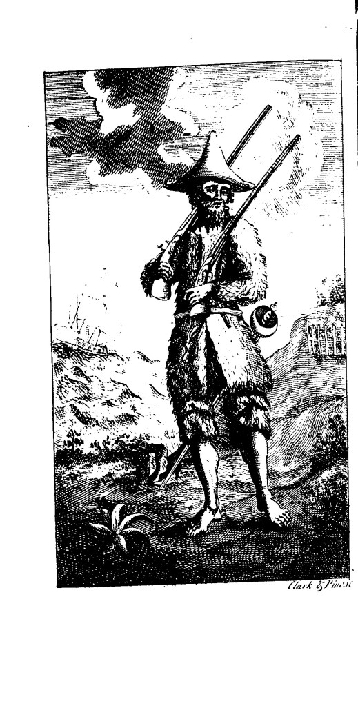 The title page of The Adventures of an Atom, printed for Robinson and Roberts in 1769, plays with the convention of author portrait. Author portraits were included in Defoe’s novels, in Robinson Crusoe (1719), Moll Flanders (1722), or Roxana (1724). Robinson Crusoe, for instance, includes a frontispiece with the author-narrator, the titular Robinson.